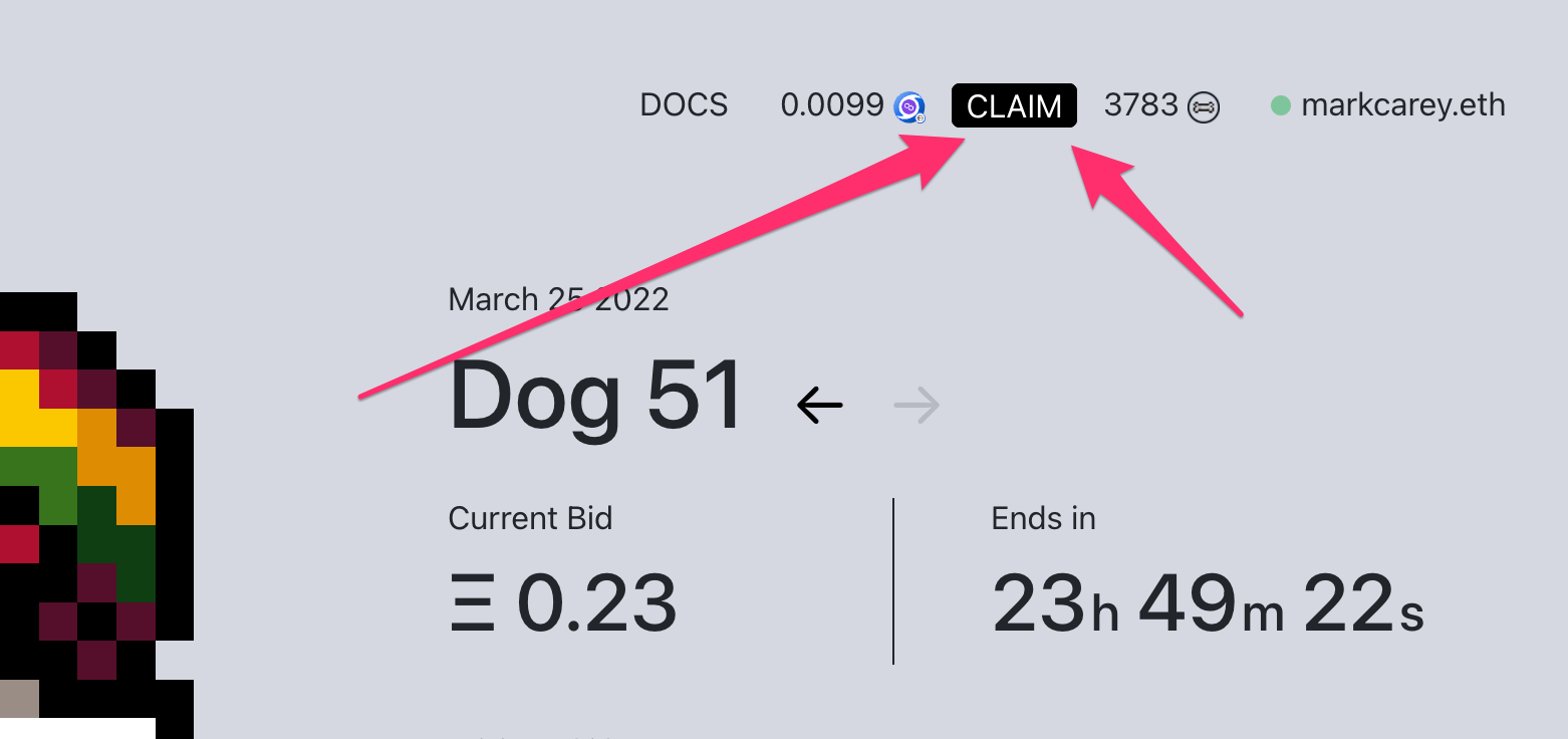 Hit the [CLAIM] button, and submit the transaction. Note that this will launch all available streams to this wallet address, even if you have more than one Dog, up to a maximum of 25 per claim transaction.