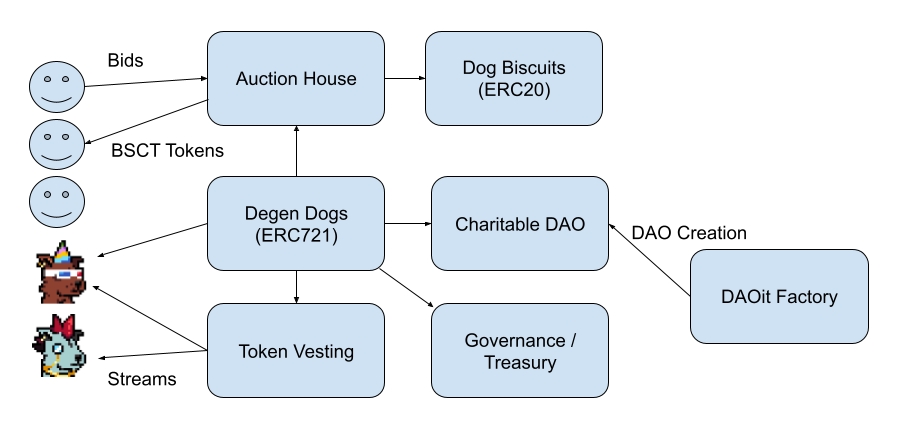 Dog.sol - Minting/issuing of ERC71 NFTs, investing in DeFi, creating/redirecting streams